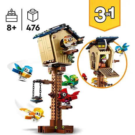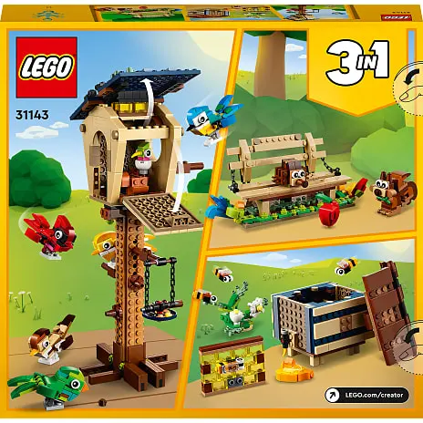 Børn vil elske at vælge mellem tre forskellige dyrescener, de kan bygge, med dette LEGO 3-i-1-sæt. De kan skabe et fuglehus med fem fugle, ombygge det til et pindsvin og et egern på en parkbænk, eller forvandle det til en bikube med fire bier og en bikage.