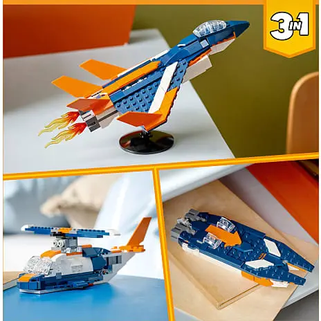 LEGO fans, der elsker tempofyldt action, får 3 forskellige autentiske modeller at bygge og lege med i dette LEGO Creator 3-i-1-sæt. De kan bygge et jetfly, ombygge det til en helikopter eller en speedbåd eller bruge de 215 klodser til at skabe deres eget seje fartøj.