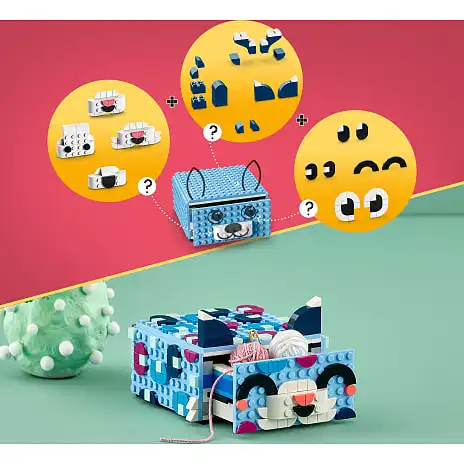DOTS-sættet introducerer børn til glæden ved LEGO leg og eksperimenter, når de laver og udsmykker de forskellige sæt. Alt er muligt med denne praktiske og sjove dyreskuffe, fordi magien og kontrollen ligger i børns fantasi. DOTS-sættet er fyldt med muligheder, der inspirerer kreative børn til selvstændig leg.