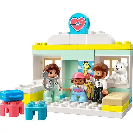 Introducer små børn til de sjove aktiviteter i et lægehus. Den venlige læge bruger et fleksibelt stetoskop (sidder permanent fast) til at lytte til barnets hjerte – barnets trøje har et hjertemotiv, der er en højdemåler med en giraf på væggen, en håndvask samt stole, hvor far kan sidde. Dette legesæt handler om vigtigheden af et godt helbred og omsorg, hvilket gør det ideelt til at udvikle børns sociale og følelsesmæssige færdigheder.