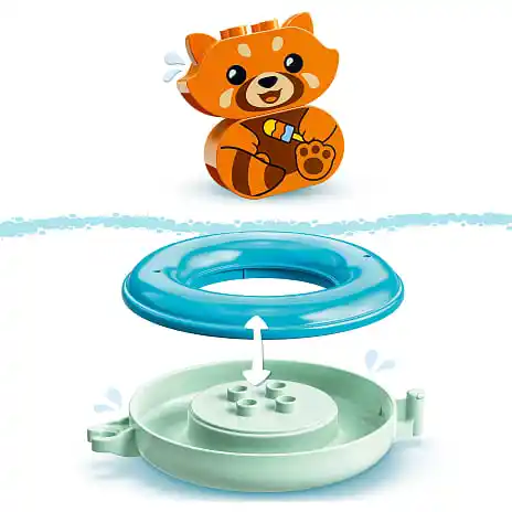 Dit lille barn vil elske at lege med denne søde panda i badet. Barnet kan vaske pandaen med spanden, som passer fint i ringen, mens pandaen tager en svømmetur. Børn kan bruge den afrundede krog på den flydende ring til at sætte den sammen med ringe fra Sjov i badet: Flydende dyretog (10965) og/eller Sjov i badet: Flydende dyreø (10966) (sættene sælges separat). Og fordi ringen er nem at åbne og skylle, er den nem at holde ren – bad efter bad.