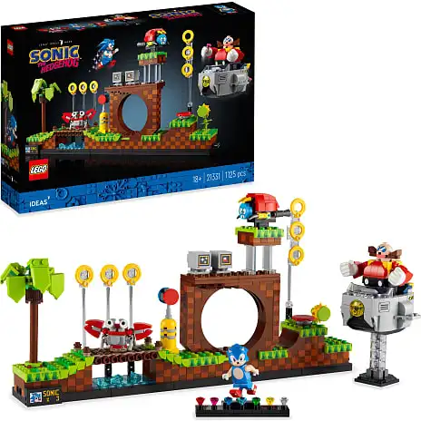Sæt banen op på din egen måde, og gør den levende med en minifigur af Sonic the Hedgehog og figurerne af dr. Eggman, Moto Bug og Crabmeat. Der medfølger trinvis byggevejledning, og ligesom i spillet indsamler du kaossmaragder undervejs. En udstillingsstand til de 7 juveler og Sonic er prikken over i’et i en farverig udstillingsmodel. Det er den bedste og mest nostalgiske Sonic-gave til dig selv eller en anden fan.