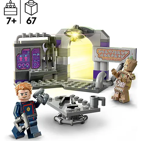 Marvel-filmfans vil genkende denne superheltebase fra Marvel Studios-filmen Guardians of the Galaxy Volume 3. Indenfor er der værktøj, teknologi og et bord, hvor minifigurerne af Groot og Star-Lord planlægger deres næste spændende mission. Børn kan få ekstra digitalt sjov ved at downloade LEGO Builder appen og træde ind i en kreativ verden, hvor de kan zoome ind på og dreje modeller i 3D, gemme sæt og holder styr på, hvor langt de er kommet med byggeriet.