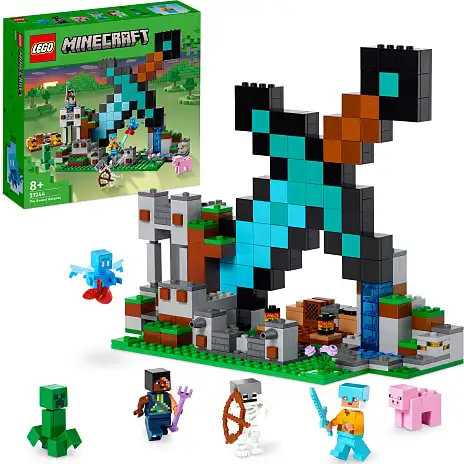 Børn kan bygge en kæmpestor diamantsværd-base i en bjergside og forsvare den mod angreb fra fjendtlige mobs. Basen indeholder et bord, en småkage og en jukebox, hvor de kan “afspille” en plade. Udenfor står en skildvagt og en vogterkriger vagt. Der er ekstra ildkraft i to skydere, som er placeret foran på basen. De fjendtlige mobs er en Creeper™ og et skelet. Venligtsindede mobs er en gris og en allay med folievinger. Et håndtag nederst på tårnet udløser en eksplosion, der får en del af konstruktionen til at falde sammen.