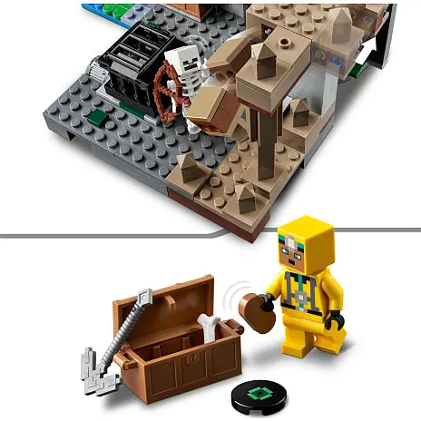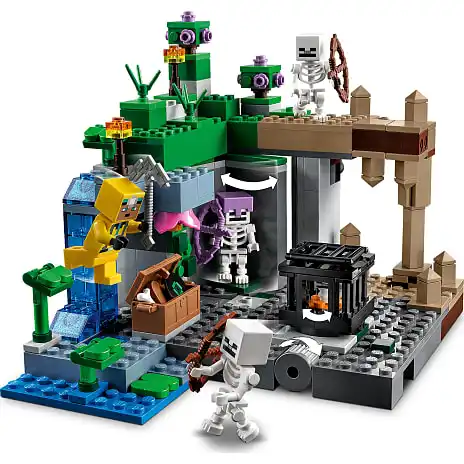 I dette alsidige legesæt skal en huleudforsker kæmpe mod fjendtlige skeletter i et sted med flere biomer, bl.a. en drypstenshule med stalagmitter og stalaktitter, en frodig hule med buske, slyngplanter, vand, ler og fakler og skeletternes fangekælder, som indeholder en drejelig skelet-spawner. Den fysiske action omfatter at skubbe til en stalagmit for at få klippestykker til at styrte ned på de fjendtlige mobs og at dreje en væg for at afsløre et tredje skelet. Våben inkluderer en armbrøst og en hakke, og der er også en kiste med en musikplade, brød og en knogle. Der er alt, hvad en Minecraft-spiller behøver for at nyde endeløse kreative eventyr!