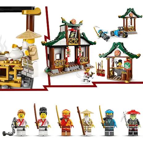 Legesættet indeholder også seks minifigurer; Nya, Kai, mester Wu, mandlig og kvindelig lærling og Knoglejæger, alle bevæbnet med våben. For første gang nogensinde sælges et NINJAGO-sæt i en klodskasse for at inspirere børn til at bruge fantasien til at bygge deres egne bygninger og køretøjer. Det er samtidig en god opbevaringsløsning og hjælper med hurtig og nem oprydning.