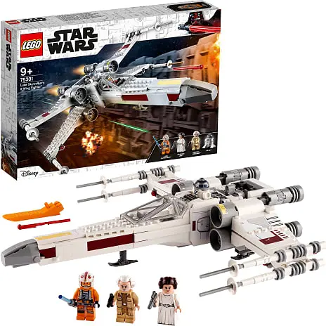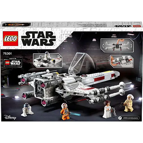 Børn kan blive heltene i deres egne episke historier med denne seje LEGO® klodsversion af Luke Skywalkers X-wing-jager (75301) fra den klassiske Star Wars™ trilogi. Den er spækket med autentiske detaljer, der vil begejstre fans, bl.a. et LEGO minifigurcockpit, der kan åbnes og har plads bagved til R2-D2, vinger, der kan sættes i angrebsposition med et tryk på en knap, optrækkeligt landingsstel og 2 fjederbetjente skydere.Leg og fremvisDette fantastiske byggelegetøj til børn indeholder LEGO minifigurer af Luke Skywalker, prinsesse Leia og general Dodonna, alle med våben, bl.a. Lukes lyssværd, samt en LEGO droidefigur af R2-D2.Det bedste byggelegetøj til børnLEGO Koncernen har siden 1999 genskabt ikoniske rumskibe, fartøjer, steder og figurer fra Star Wars universet. LEGO Star Wars er det mest succesfulde tema med sjove gaveidéer til kreative børn og voksne.