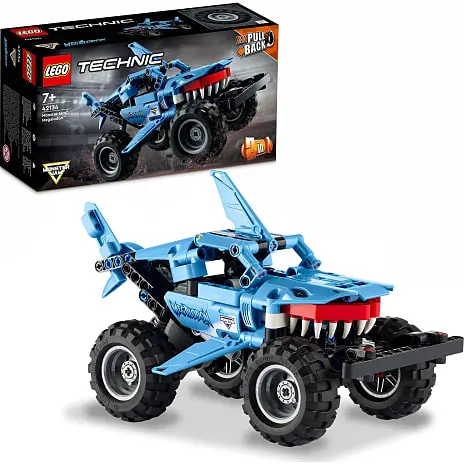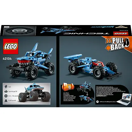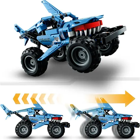 Når det er tid til en ny udfordring, kan 2-i-1-trucken ombygges til en lav racerbil. Med inspiration fra det mytiske havmonster lusca kombinerer denne bil en haj og en blæksprutte til et frygtindgydende køretøj, komplet med pull-back-action til leg i høj fart.