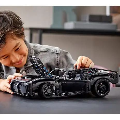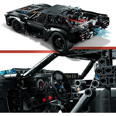 Modellen omfatter 2 lysklodser – 1 rød og 1 gul. Det røde lys giver den gennemsigtige motor bagtil en flot glød, mens den gule klods lyser kølergitteret op. Andre seje funktioner omfatter styring på forhjulene, differentiale på baghjulene, en roterende flamme samt døre og motorhjelm, der kan åbnes. Børn vil elske at udforske modellen, før de udstiller den som en hyldest til deres yndlingssuperhelt.