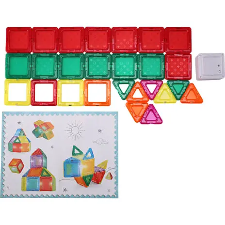 De transparente og farverige Magnatix plastfliser, klikkes nemt sammen med hjælp fra magneter i fliserne. Så slip fantasien løs med Magnatix ! 3år+.