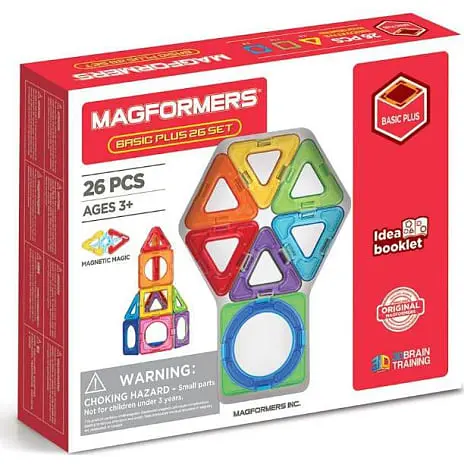 Magformers magnetbrikker i flere forskellige basis farver. Slip kreativiteten løs og opfind helt nye konstruktioner. Magformers er nemt at samle og skille ad igen. Her får fantasien frit løb og udfordres til det yderste. Sættet består af 26 dele som kan sammensættes og bygges på utallige måder.