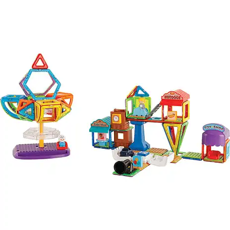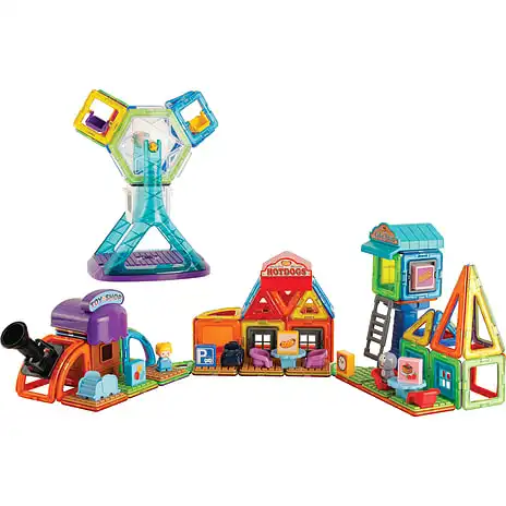 Byg dit helt eget Fantasy Land med dette Magformers Fantasy Land Sæt med 126 stykker. Inkluderer opgraderet Carnival tilbehør, nye figurer med aftagelige hatte og store stykker tilbehør. Byg på langs, byg opad, byg et tårn, et skib eller et hus eller en legeplads – kun fantasien sætter grænsen for dit Fantasy Land! Magneterne i Magformers er svejset fast og sikkert indkapslet, men kan stadig rotere, så Magformere kan sættes sammen på alle leder og kanter. Neodymmagneterne, der bruges i Magformers, er de stærkeste af sin slags for garanteret forbindelse.