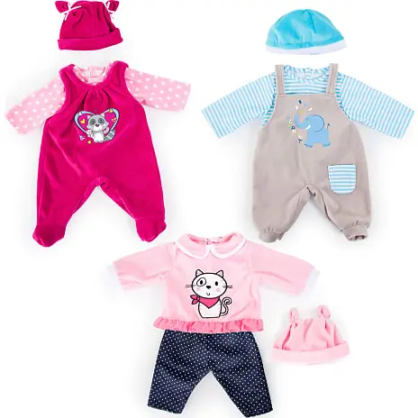 3 sæt tøj i lækker kvalitet. Passer dukker der måler 38 – 46 cm.