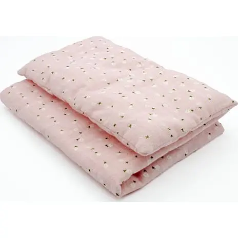 Sengetøj med både dyne og pude i sødt mønster, der gør det hyggeligt at putte dukken.