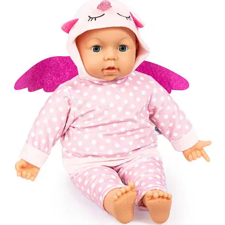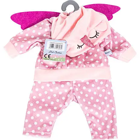 Dette fantastiske dukkedragt er designet med smukke detaljer. Dragten har både vinger og på hætten er der øjne og et enhjørninghorn. Dragten har en smuk rosa farve og hvide prikker, Med dette dukketøj får din yndlingsdukke ikke kun et individuelt udseende, men desuden trænes fingerfærdighed gennem leg. Dukketøj til dukker fra 42 til 46 cm.