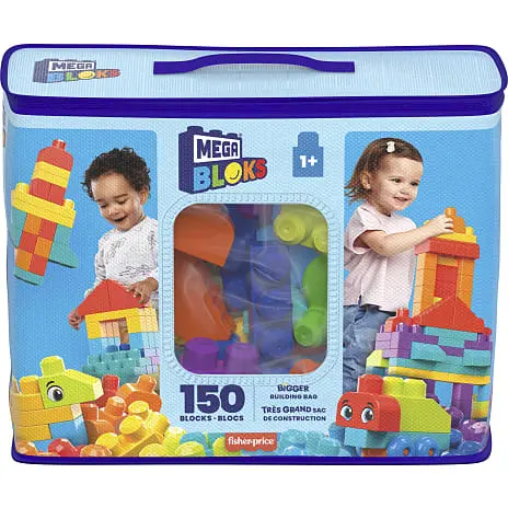 Sæt din lille bygger’s fantasi i gang med Bigger Building Bag, fyldt med 150 store og farverige byggeklodser og specielle stykker inklusive blokke dekoreret med øjne, bladklodser, tagklodser og 1 akselafstand. Disse klodser, der passer perfekt til små hænder og store fantasier, er nemme at gribe om og lette at stable, og hjælper med at udvikle finmotorik, kreativitet og fantasi. Når spillet er slut, skal du opbevare blokkene i den genanvendelige taske for nem rengøring.