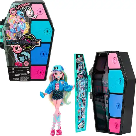Skulltimate Secrets™ er tilbage! Med Monster High™-dukkerne får børn en spektakulær udpakningsoplevelse med mere end 19 overraskelser, bl.a. modetøj, tilbehør og tematiske dele. Color Reveal™-teknologi og trin for trin-udpakning gør oplevelsen magisk og mystisk, mens det kisteformede skab er perfekt til leg og opbevaring. Sælges hver for sig og så længe lager haves. Fuld bevægelighed. Dukken kan ikke stå af sig selv. Farver og mønstre kan afvige fra det viste.