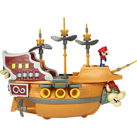 Deluxe Bowser’s Airship er en propel drevet fæstning skabt til at bringe din Super Mario™ legesæt drømme til live. Luftskibet er udstyret med kanoner, roterende propelmaster, hjul og autentiske lyde i spillet og omfatter en to og en halv tomme Mario-figur, der er klar til sejr. Rul luftskibet for at aktivere roterende propeller og åbn skibet for at gemme alle dine figurer! Tryk på knappen for at aktivere lydeffekter i legen. Mario skal erobre luftskibet for at stoppe invasionen af Svamperiget. Det er op til dig, Mario og hans venner at besejre Bowser. Dette legesæt fungerer med de fleste to og en halv tomme figuerer. 2 x AAA-batterier påkrævet (medfølger ikke). Foreslået til børn i alderen 3 eller ældre.