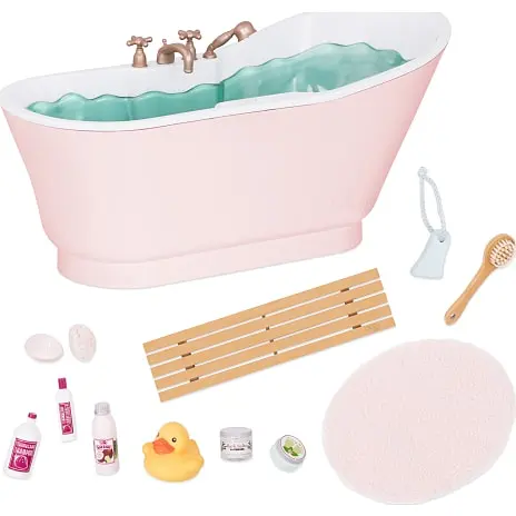 Inklusiv: 1 Badekar, 1 badeand og en masse andet sjovt badetilbehør. Dukker sælges separat.