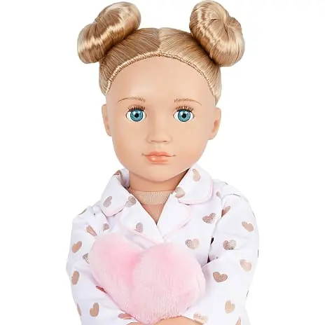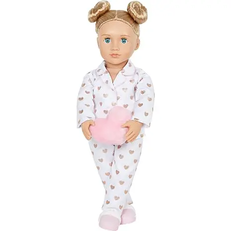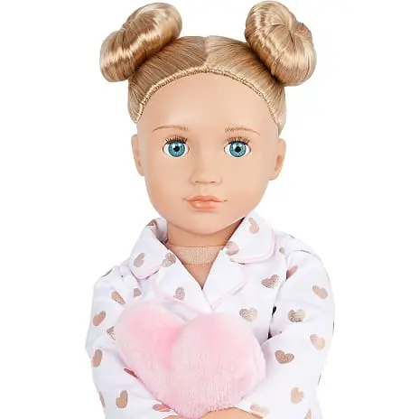 Denne Our Generation 46 cm dukke har langt blondt hår, der er sjovt at børste og sætte, og hendes lyseblå øjne lukker, når det er tid til søde drømme.