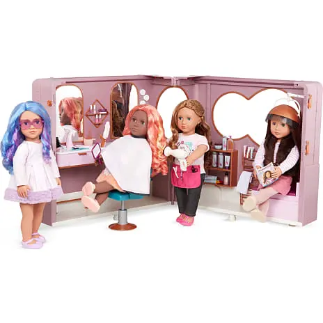 Giv sjove frisurer til alle 46 cm dukkekunder med vores Generation Salon on Wheels! Med sjove lys, en hårtørrerlyd og en rullende trailer giver dette legesæt dine dukkefrisører mulighed for at skabe en smuk salon-scene i dine yndlingslegeområder.