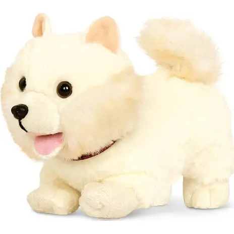 Hvalpen har lun, blond plys pels er superblød, og den er den helt rigtige størrelse til at lære dine dukker at passe deres kæledyr.