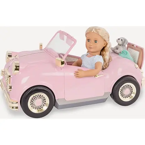 Super sej Our Generation bil. Funktioner: FM Radio med 4 forskellige sange, lys i instrumentbræt, anhængertræk til campingvogn og hestetrailer. (Sælges separat)