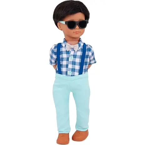 Giv din dukke et elegant look med det klassiske slips som prikken over i’et med det sidste touch. Tilføj derefter støvlerne og solbrillerne, når det er tid til at gå ud og rejse. Dette 18-tommers drengedukketøj er let at tage af og på, og det kan blandes og matches med andre outfits for at forberede sig på ethvert eventyr! (Dukker sælges separat)