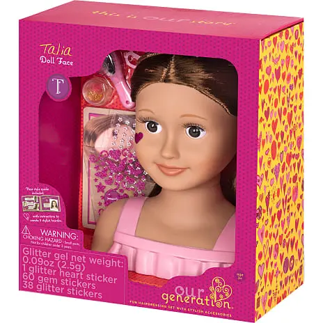 Dette eksklusive Sminkehoved og frisør-dukke fra Our Generation er i høj kvalitet og opfylder alles drøm om at lege beauty salon.
