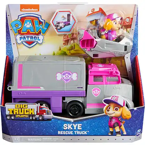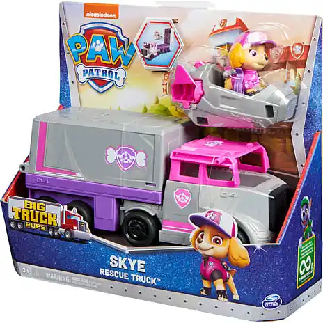 Slå dig sammen med Skye for nogle actionfyldte motorvejsredninger i hendes Big Truck Pups — Rescue Truck. Skyes store redningskøretøj har en spændende mulighed for forvandling. Bare løft taget på førerkabinen op for at få Skye ind og ud af førersædet, derefter åbner du taget på traileren for at aktivere Kommandocentral-tilstanden, der forvandler traileren til en 2-etagers Kommandocentral, og afslører hendes redningsjet, der gør det til det perfekte redningskøretøj til redningsmissioner på vejen og i luften. Med PAW Patrol legetøj kan børn udforske deres fantasi og udvikle deres motoriske evner gennem leg, når de genoplever deres yndlingsscener fra serien, som Mighty Pups og PAW Patrol Movie, eller skabe helt nye eventyr med alle hvalpene fra PAW Patrol (sælges hver for sig). For endnu mere sjov og spændende serie-inspirerede missioner, prøv Big Truck Pups actionfigurerne og deres teamkøretøjer for masser af actionfyldte eventyr (sælges hver for sig).