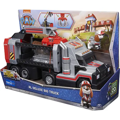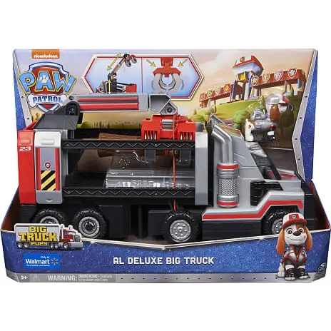 Velkommen til PAW Patrols nyeste medlem, Al og hans Deluxe Big Truck. Denne megalastbil er en skovningslastvogn i en episk størrelse. Megalastbilen og PAW Patrols nyeste hvalp er klar til actionfyldte redningsmissioner med alle dine PAW Patrol-venner (sælges separat) ved brug af den stigende kontrolboks med den udtrækkelige tømmergrab og en klomekanisme, der kan låses. Ved at løfte taget af lastbilens førerhus kan du placere Al på førersædet, og du kan derefter ræse til redning i hans store lastbil. Når du er ankommet, skal du placere Al i kontrolboksen i lastbilanhængeren, og derefter hæve kontrolboksen og skubbe den til siden, frem og tilbage, eller drej boksen op til 360° for at være i den perfekte position, før kloarmen trækkes ud for at samle alt fra træstammer til I-bjælker op. Når den er korrekt placeret, skal du bruge låsekloen til at holde træstammerne eller I-bjælkerne på plads, før du læsser dem i lastbilen og suser af sted mod din næste mission. Brug din fantasi til at genskabe dine favorit-PAW Patrol-redningsmissioner fra serien, såsom Mighty Pups og PAW Patrol Movie, eller skab helt nye eventyr med alle PAW Patrol-vovserne (sælges separat) med PAW Patrol Big Trucks Deluxe Lil Al. For endnu flere serie-inspirerede redninger kan du tilføje PAW Patrol: Big Truck Hero Pups, som fx Chase, Marshall, Rubble, Skye og resten af holdet, til din samling sammen med det spændende Truck Stop HQ (figurer og legesæt sælges separat ). PAW Patrol figurer, legetøjsbiler, legesæt og plysdyr er det perfekte legetøj til drenge og piger fra 3 år og opefter, så slut dig til Al og hans Deluxe Big Truck for at tage handlingen fra PAW Patrol: Big Truck Pups med dig hjem.