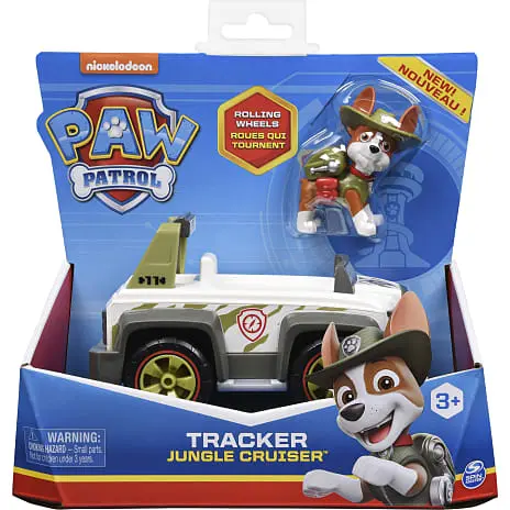 PAW Patrol er i gang med deres redningskøretøjer! Tag med Tracker på action-fyldte missioner i hans junglepatruljevogn! Når der opstår problemer, placerer du Tracker (figur inkluderet) i førersædet og kører til undsætning på rigtige, fungerende hjul! Med