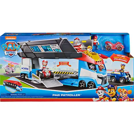 Tag med Ryder og PAW Patrol på redningseventyr med PAW Patroller. Holdets action-fyldte transportmiddel leveres med Ryder og hans terrængående køretøj og har transformerende døre, dobbelte køretøjsramper og realistiske lyde. Når der opstår problemer, gør du klar til at komme til undsætning. Der er plads til to køretøjer inde i PAW Patroller (medfølger ikke) og plads på ydersiden til yderligere fire PAW Patrol-biler. Læs Ryder og en anden hvalp på via rampen bagpå og brug din fantasi til at udleve dine redningsmissioner. Tryk på knappen på siden af PAW Patroller for en episk dørtransformation. Køretøjets sider vender sig opad og afslører dobbelte køretøjsramper. Træk i håndtaget for at justere positionen på ramperne og tryk på startknapperne for at sende dine køretøjer til redning. Tryk derefter på knappen øverst på PAW Patroller for at høre lydeffekter fra showet. Dette stykke PAW Patrol legetøj giver liv til spændingen og eventyret i hitshowet. PAW Patroller med Ryder og terrængående legetøj til 3-årige drenge og piger er den perfekte gave til børn og fans af PAW Patrol. Gå sammen med resten af hvalpene og deres redningslegetøjsbiler (hver sælges separat) og hjælp med at redde dagen. Kør til undsætning med PAW Patrol og PAW Patroller.