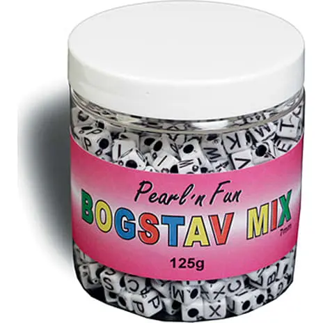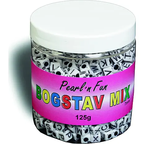 Perlerne er velegnet til at blive trukket på elastiksnor. De måler 7 mm, er i sort/hvid og vejer 125 g i alt.