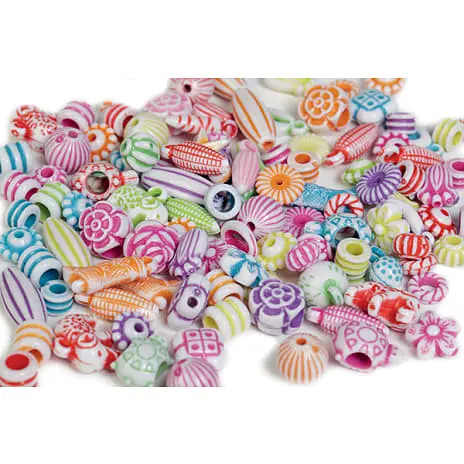 Dette perlemix består af sjove figurperler i forskellige farver. Perlerne er velegnede til at blive trukket på elastiksnor.