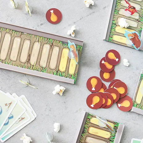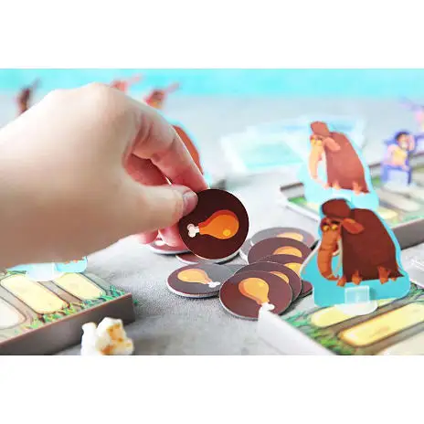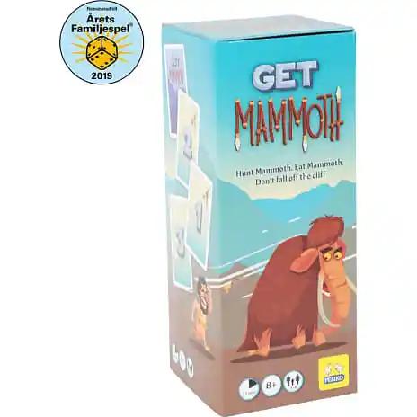 Din stamme er sulten, og du fik øje på en mammut. Hver spiller får fire krigere, syv kort, en mammut og en spilleplade. Sæt mammutten på kanten af klippen og din kriger i den anden ende af brættet. Alle spiller et kort på samme tid, og alle flytter den samlede sum af kortene. Med specielle kort kan du bevæge dig mere eller mindre eller springe en hel tur over. Saml mammut-mønter og køb dine kort tilbage. Jagt mammutten fra klippen, men pas på ikke at falde ned med den. Driv de andre stammer til udryddelse og foder din egen stamme med noget velsmagende mammutkød. Get Mammoth er et sjovt og spændende spil for hele familien.