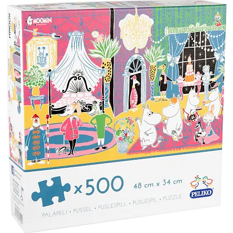Puslespil med 500 brikker, med søde motiver af Mumitroldene.