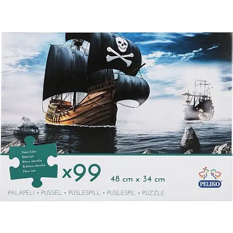 Dette puslespil illustrerer et billede af et piratskib ude på det åbne hav, hvor historier og myter om de frygtindgydende pirater og deres berygtede kaptajner finder sted. Kender dit barn nogle af dem, eller måske hvor nogle af skattene er blevet gemt?