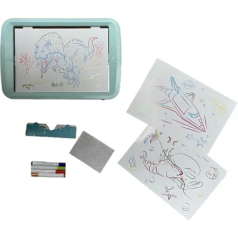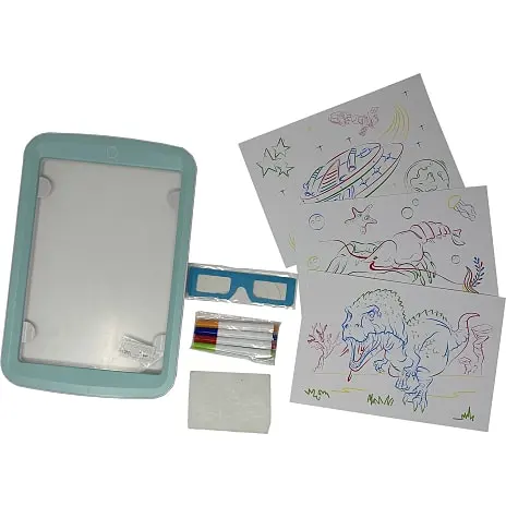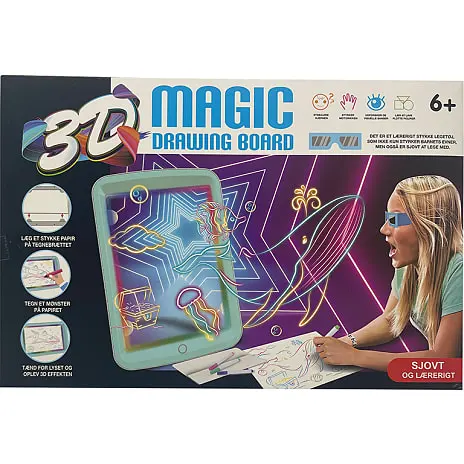 Brug markørerne og tegn efter de 6 forskellige scener og ved hjælp af brillerne skaber det en cool 3D effekt.