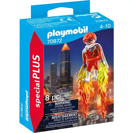 Han flyver gennem luften ved hjælp af flammerne fra ilden.