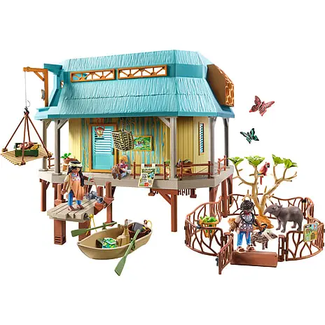 Dyrene i regnskoven bliver passet i dyreklinikken. Omfatter indhegninger, veterinærområde med behandlingsbord, røntgen og varmelampe (2 x 1,5 V mikrobatterier (AAA) påkræves), forskningslaboratorium, anløbsbro med robåd samt fragtelevator. Med omfattende tilbehør og dyresamlekortet “Tapir” med spændende lydindhold. Mål: 58 x 52 x 33 cm (LxDxH).