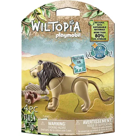 PLAYMOBIL-løve med tilbehør, dyresamlekort og spændende lydindhold. Wiltopia-serien fra PLAYMOBIL lader børn opdage dyr og naturen i deres eget kosmos og fordybe sig i fantasifulde rollespil.