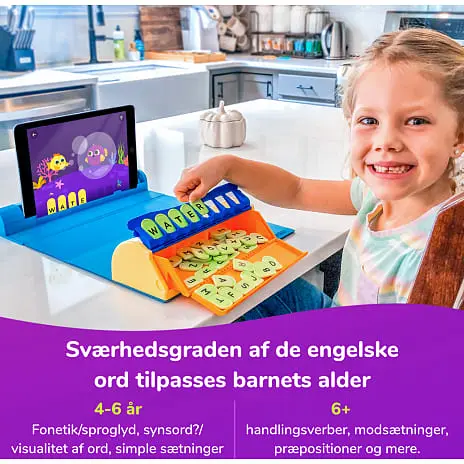 Der findes 5 forskellige spil som skal løses via stavning og grammatik, det er en ny og sjov måde at lære på. Der er mere end 250 forskellige opgaver som skal løses ved hjælp af bogstaver.