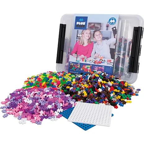 Denne Plus Plus boks indeholder alt hvad du har brug for, for at komme i gang med dine byggeprojekter. Derudover får du en perfekt opbevaringsboks, hvor alle dine Plus Plus kan være i. Plus Plus boksen indeholder 2400 Plus-Plus (1200 basic, 600 neon, 600 glitter mix) 2 byggeplader og en inspirationsmappe. Mål: 40 x 30 x 13 cm. Der er to greb til at lukke kassen så den er nem at bære. Produktet er naturligvis kompatibelt med alle andre Plus Plus-produkter.