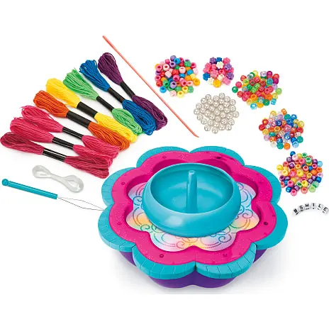 Shimmer ‘n Sparkle Spin & Bread Bracelet Studio gør det til en leg at skabe flotte og farverige armbånd på få minutter! Drej beholderen med perlerne for at opsamle dem og skabe unikke armbånd.