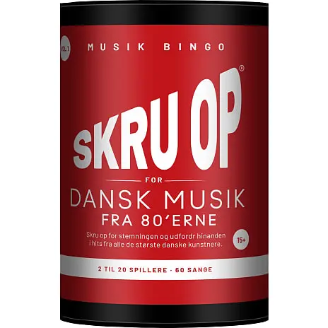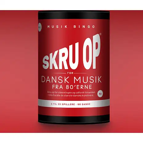Musikbingo som brætspil. Skru op er som klassisk bingo, hvor tallene er skiftet ud med musiknumre og deltagerne skal lytte sig frem til, om der spilles et nummer, som er på deres spilleplade. Spillet har enkle regler og man er i gang efter få minutter. Playlister tilgås via streamingtjenester eller oprettes manuelt. Indeholder hits fra mange af de største danske kunstnere.