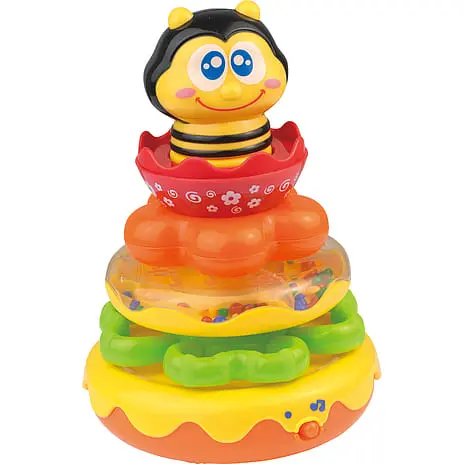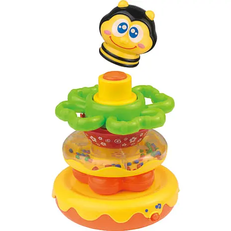 Stable de forskellige strukturerede ringe på den farverige gyngende base og placer biens hoved ovenpå. Tag fat i hver ring og udforsk teksturerne. Ryst for at se, om den rasler, eller tygge den, og find ud af, hvordan den føles. SPIRE Honey Bee stablering kommer med sjove lyde for at opmuntre og give belønning til legen. Det er fantastisk til problemløsning og hjælper også dit barn med øjenhåndskoordinationer. Velegnet fra 1 år og derover