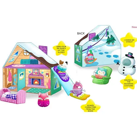 Udvid dit squishy univers med dette skiskyttelegesæt. Klem dig ind og ud af sengen eller snemandskostumet, eller grib skiudstyret til en tur på løjperne. Skihyttesættet byder på alt, du kan ønske dig til en squishy, fantastisk vinterferie. Det er så blødt at røre ved, at det nok er det mest krammevenlige legetøj, du kan få.