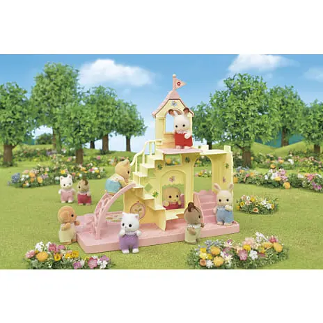 Sylvanian Families Baby Eventyr Slottet er en skøn legeplads for Sylvanian Babies. De små kan klatre op ad klatretrappen og se ud gennem vinduet i det lille tårn. Man kommer ned igen ad trappen. Over den lille rutsjebane kommer babyerne direkte til sandkassen, hvor der bages søde sandkager. Legesættet indeholder Sylvanian Families Baby Eventyr Slottet og Chokoladekanin Baby figuren. Mål (BxHxD): 20x21x13cm. Egnet til børn fra 3 år.
