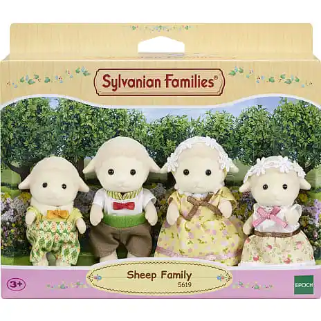 Figursættet indeholder mor, far, datter og søn. Figurernes hoveder, arme og ben er bevægelige. Deres tøj kan tages af og på. De fløjlsbløde figurer i Sylvanian Families’ Familien Får er mellem 6 og 8 cm høje og egnet til børn fra tre år.